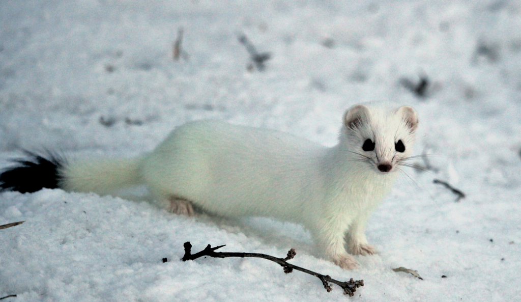 A weasel, in the snowy environment such a coat evolved to blend in with..