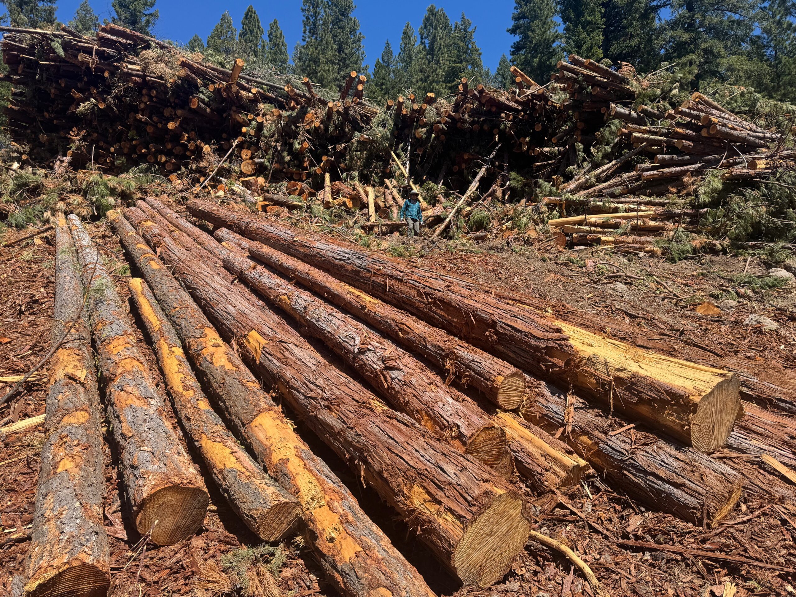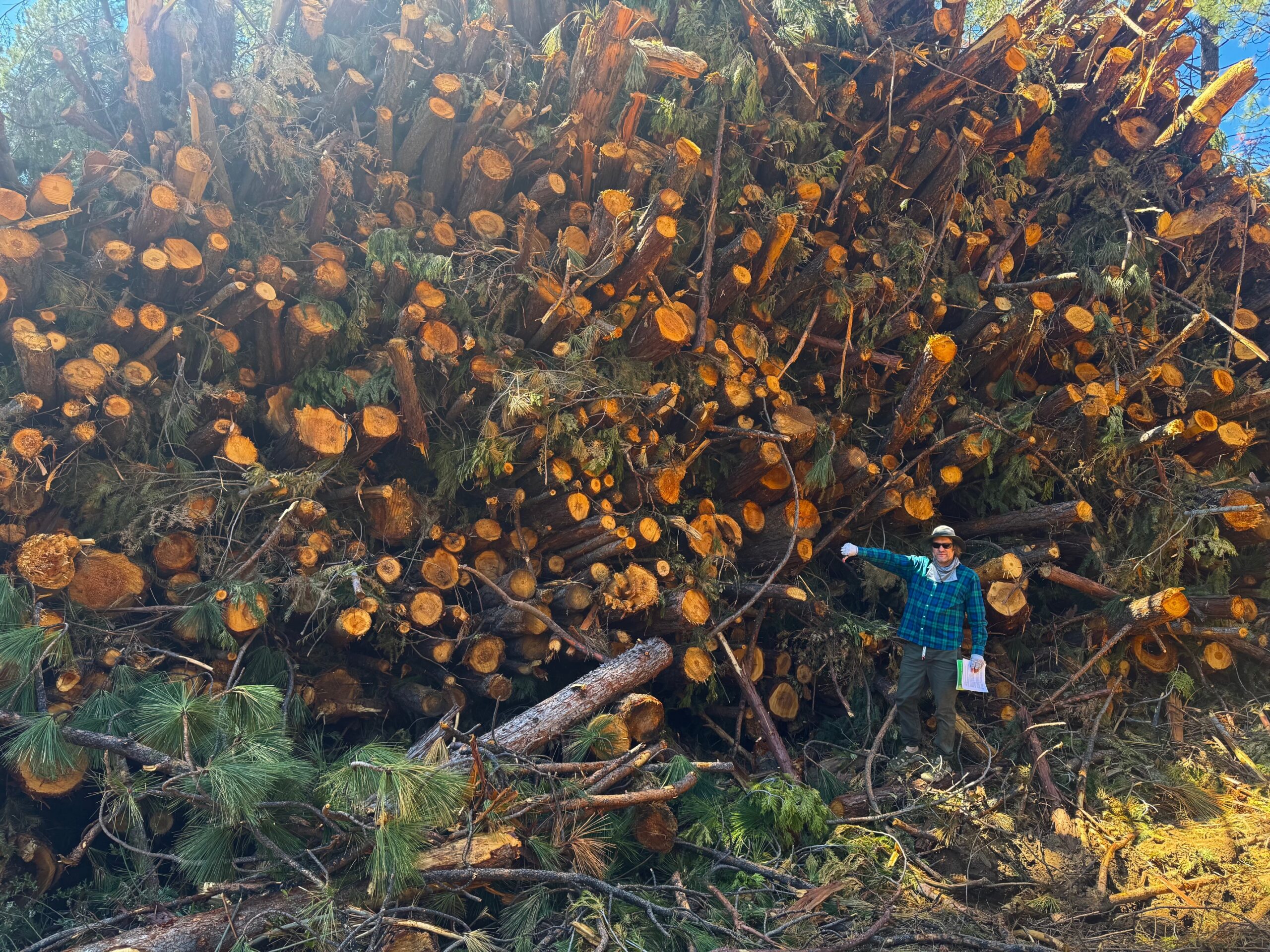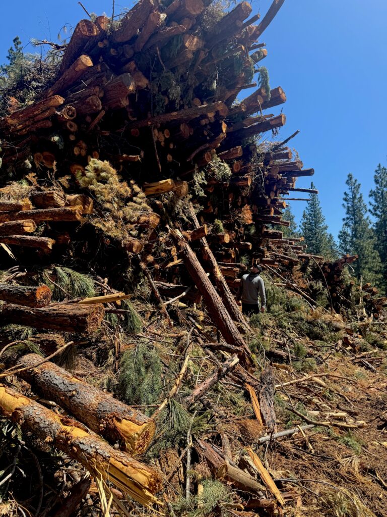 This was taken yesterday (the day after “Earth Day”) just southeast of the “University of Earth” along Lower Bonta Ridge Rd. in Blairsden, CA. about a mile or two from Highway 70. Industrial logging equipment was also observed. This is the “Community Destruction Project” being carried out by “your” USFS, at a cost of $673 million to taxpayers. That amount of money could harden all the communities in Plumas County, if elected officials chose to do so, rather than subsidize forest destruction.
